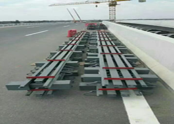 橋梁伸縮縫:指的是為滿足橋面變形的要求,通常在兩梁端之間、梁端與橋臺(tái)之間或橋梁的鉸接位置上設(shè)置伸縮縫。要求伸縮縫在平行、垂直于橋梁軸線的兩個(gè)方向,均能自由伸縮,牢固可靠,車輛行駛過時(shí)應(yīng)平順、無突跳與噪聲;要能防止雨水和垃圾泥土滲入阻塞;安裝、檢查、養(yǎng)護(hù)、消除污物都要簡易方便。 在設(shè)置伸縮縫處,欄桿與橋面鋪裝都要斷開。